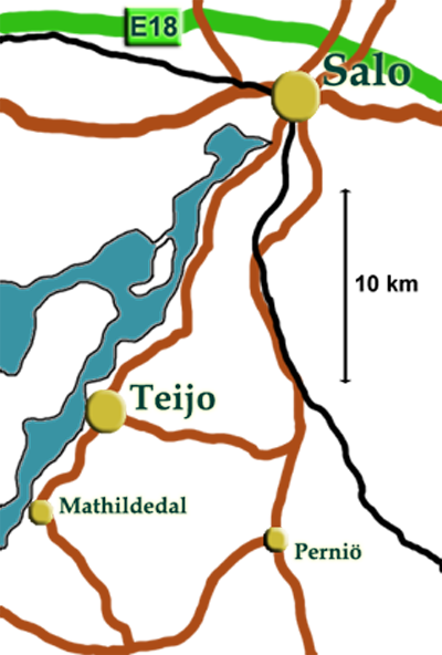 Maanteitse Teijon ruukkikylään on matkaa Salon keskustasta 20 kilometriä etelään Halikonlahden rantalinjaa seuraavaa tietä (1824).